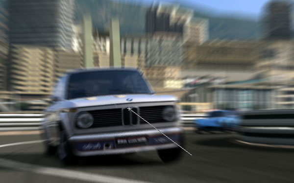 The radial blur filter allows us to enhance an image by adding a zoom effect. This is a powerful effect that will require us to mask out parts of the image to preserve our subject. In this example we are focusing on the vintage BMW 2002tii sports car. Take note of the flat focus of original image, although slightly dramatic we will use radial blur to add some excitement.